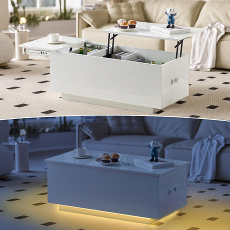 Lift Top Coffee Table with LED Light, Modern High-Glossy Coffee Table