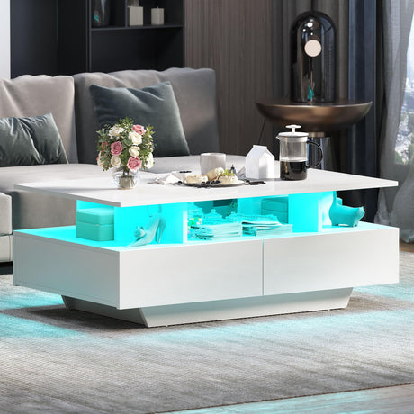 LED Coffee Table with 2 Drawers, High Glossy Modern Center Table