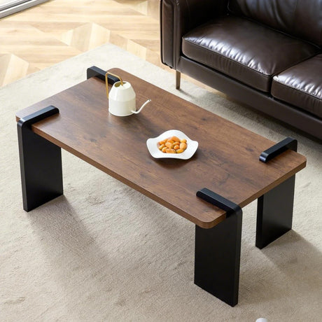 Coffee Table 39.3 inch Modern Wooden Center Table with Black Metal Legs