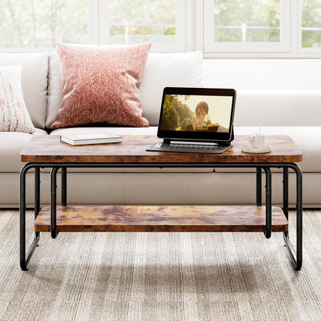 47" Coffee Table, Rectangle Coffee Table with 2-Tier Storage and Rounded Corner