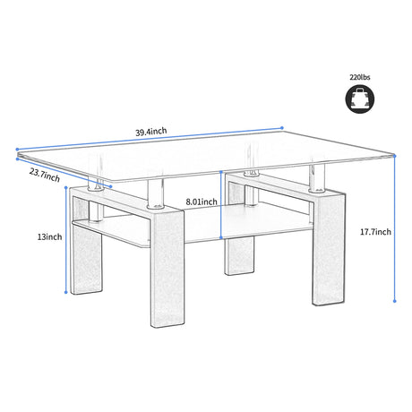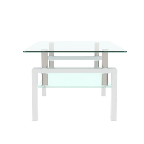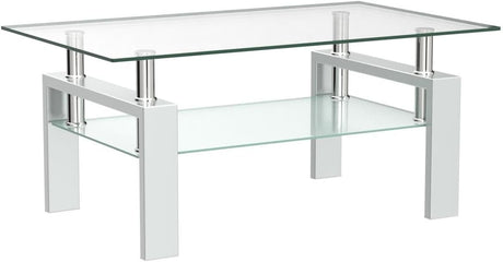 Rectangle Glass Coffee Table 2-Tier Tea Table Modern Side Coffee Table
