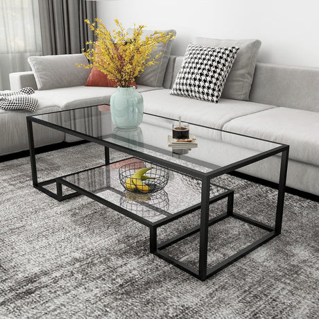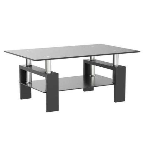 Glass Coffee Table for Living Room, Modern Coffee Table with Black Tempered Glass