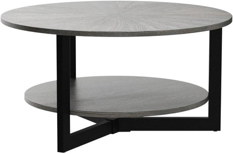 Farmhouse Coffee Table, 2 Tier Round Coffee Table with Storage, Living Room Coffee Table