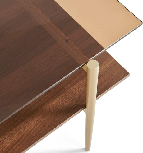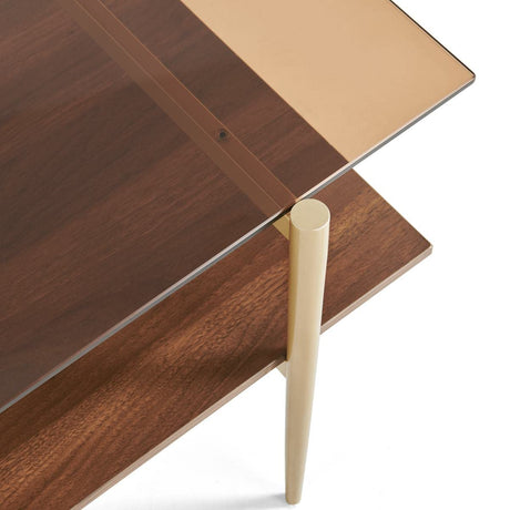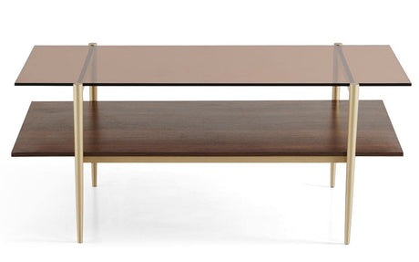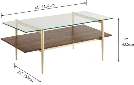 Tadio Double Layer Glass Coffee Table for Living Room, Brown Glass & Coffee Brown