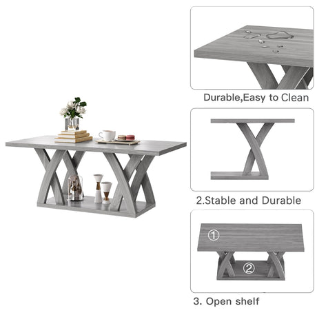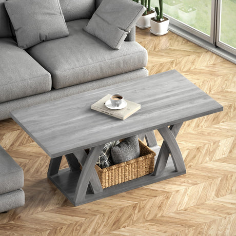 Farmhouse Coffee Table with Shelf, Wood Coffee Table for Living Room, Open Display Area