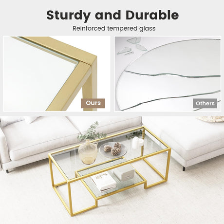 Glass Coffee Table, Clear Double Layer Glass Coffee Table