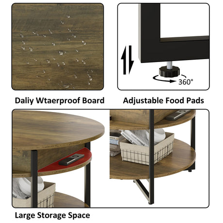 Round Coffee Tables, Accent Table Sofa Table Tea Table with Storage 2-Tier