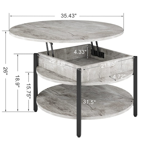 Round Lift Top Coffee Table, 35.43’’ Circle Coffee Table with Storage
