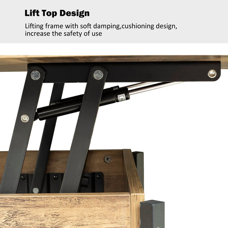 Lift Top Coffee Table with Hidden Compartments & Bottom Open Shelf