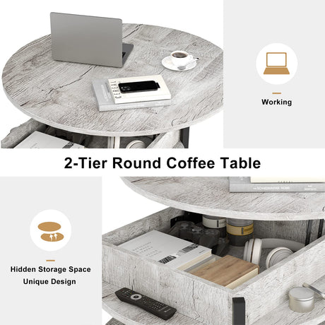 Wood Lift Top Circular Coffee Table with Hidden Compartment 31.5" D x 31.5" W x 17.35" H
