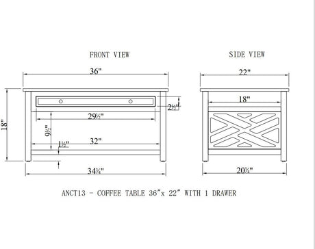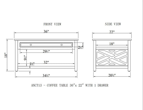 Alaterre Furniture Coventry 36" W Wood Coffee Table with 1-Drawer, Gray