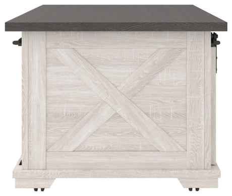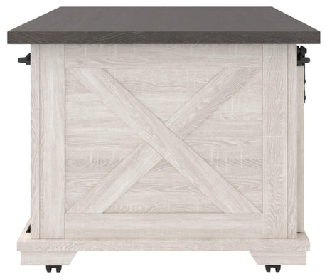 Dorrinson Farmhouse Coffee Table with Sliding Barn Doors, Antique White & Brown