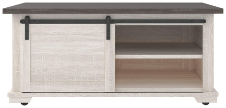 41.7" Lift Top Coffee Table with Storage Drawer& Hidden Compartment Barn Door Cabinet