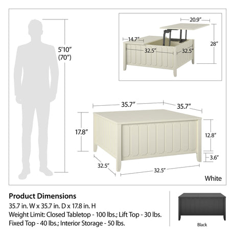 Farmhouse Lift Top Coffee Table, Square Wood Center Table