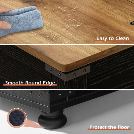Lift Top Coffee Table with Hidden Compartments & Open Shelf