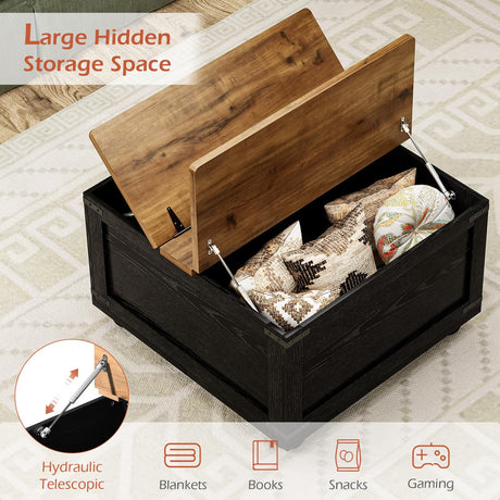 Farmhouse Coffee Table with Hydraulic Gas Rod, Black Square Coffee Table