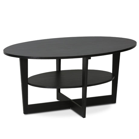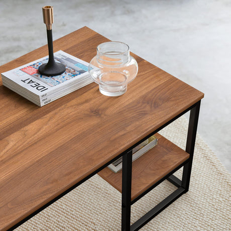 Dark Wood Coffee Table with Storage Shelf - Indoor Solid Pine Wood Center Table