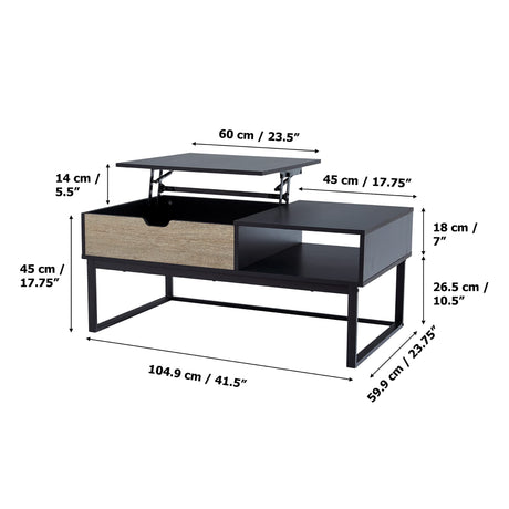 Peaktop Lift Top Coffee Table with Storage and Metal Legs