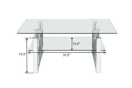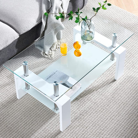 Glass Coffee Table Modern Rectangle Coffee Table with Tempered Glass Top