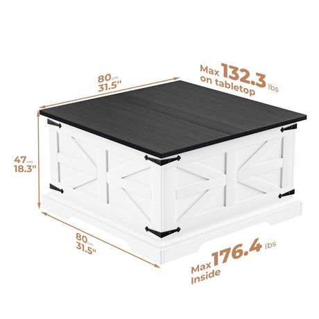 Farmhouse Coffee Table with Storage, Square Center Table for Living Room, Rustic
