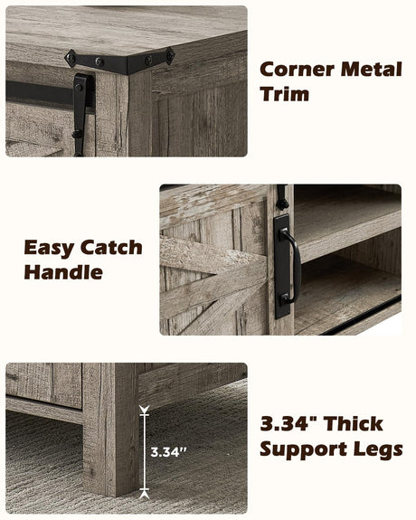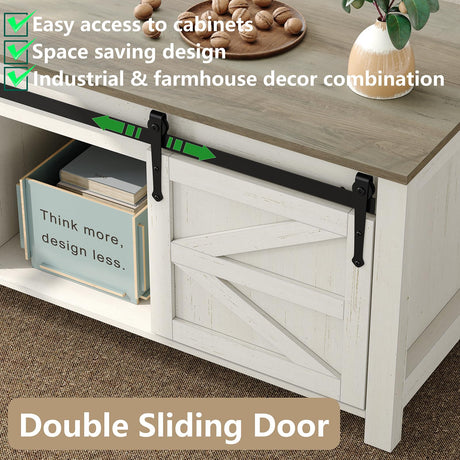 47'' Coffee Table with Storage & Sliding Barn Doors, Farmhouse & Industrial Cocktail Table