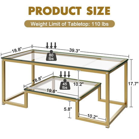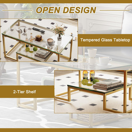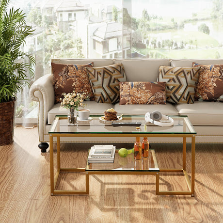 Coffee Table Gold Glass Coffee Table for Living Room,2 Tiers Rectangle Center Table