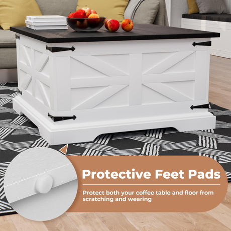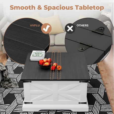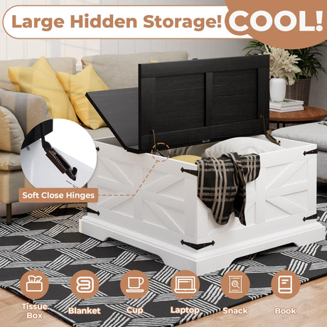 48" Farmhouse Lift Top Coffee Table with Storage Sliding Barn Door & Large Hidden