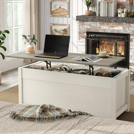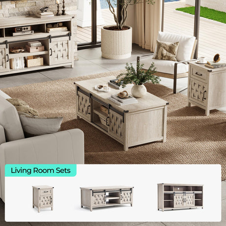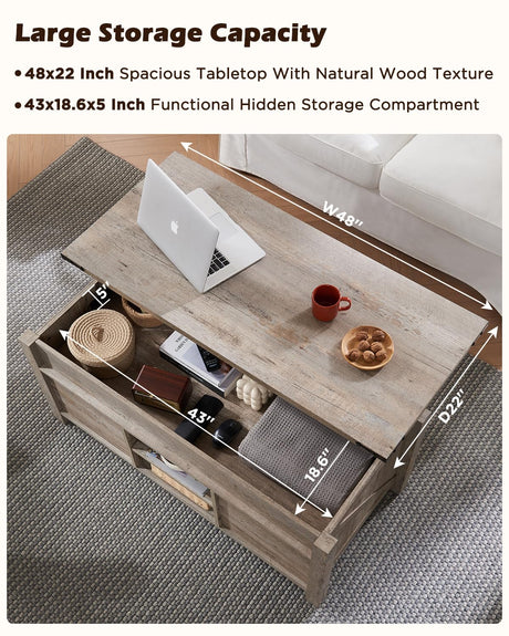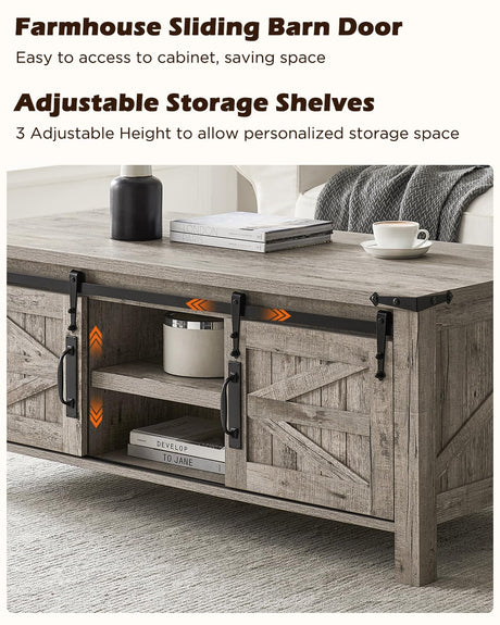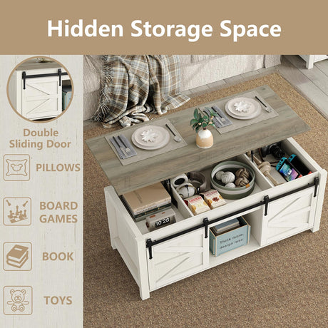 47.3''Lift Top Coffee Table, Farmhouse Center Table with Large Storage & Sliding Barn Door