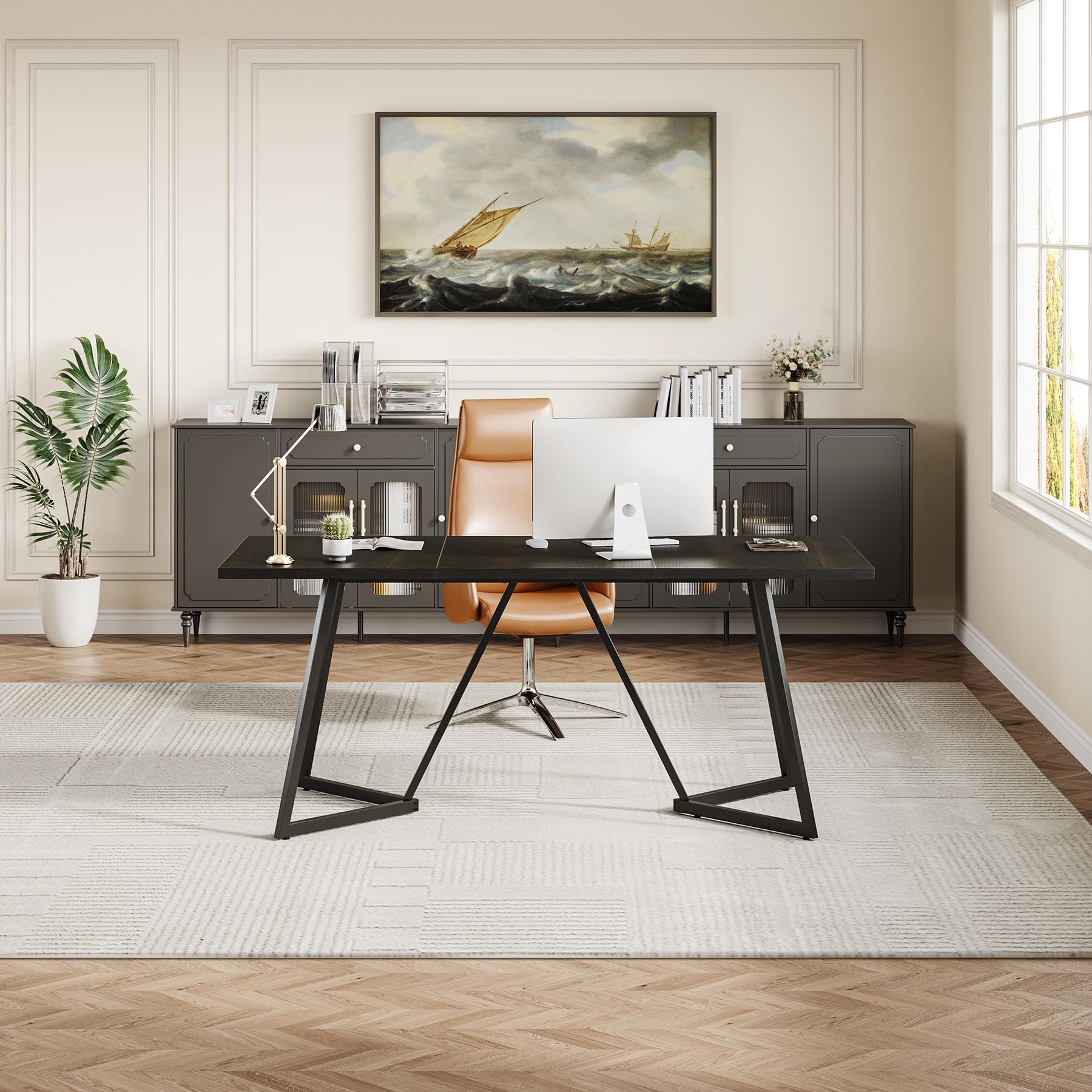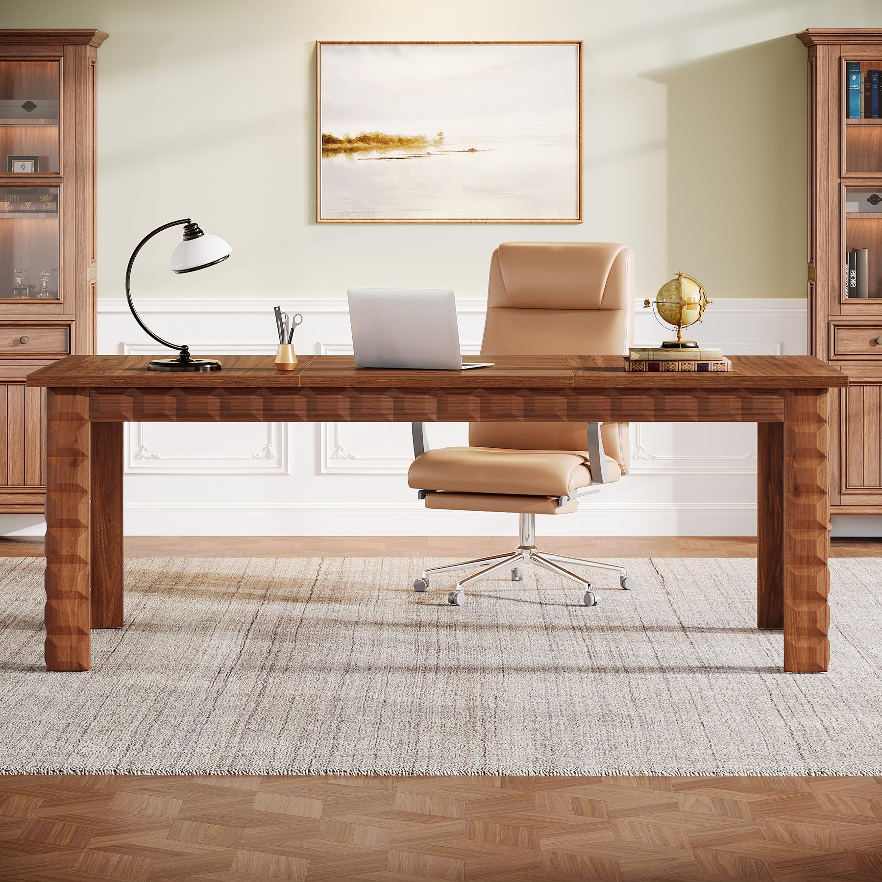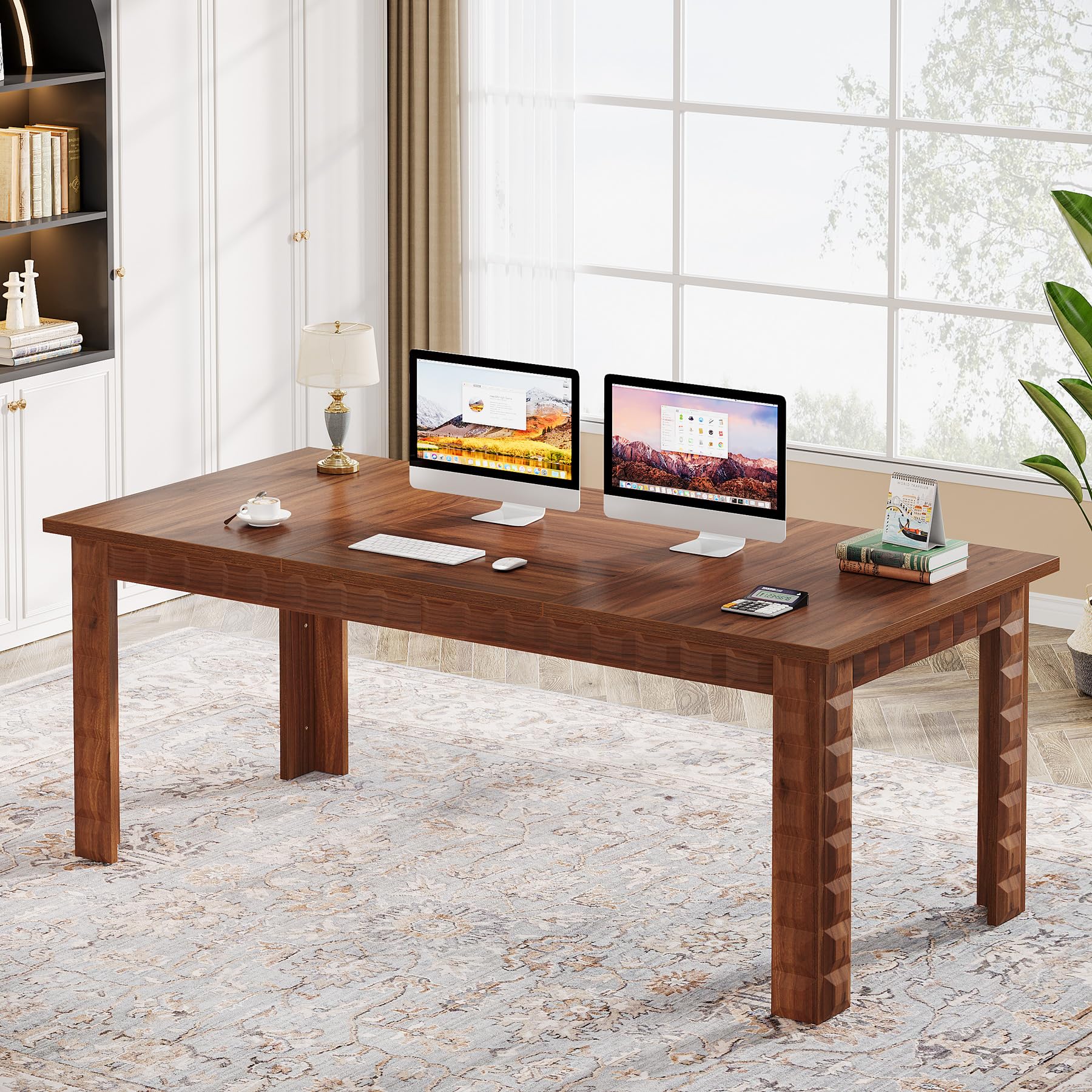Executive Office Desk, 70.87-Inch Large Wood Computer Desk Study Writing Table