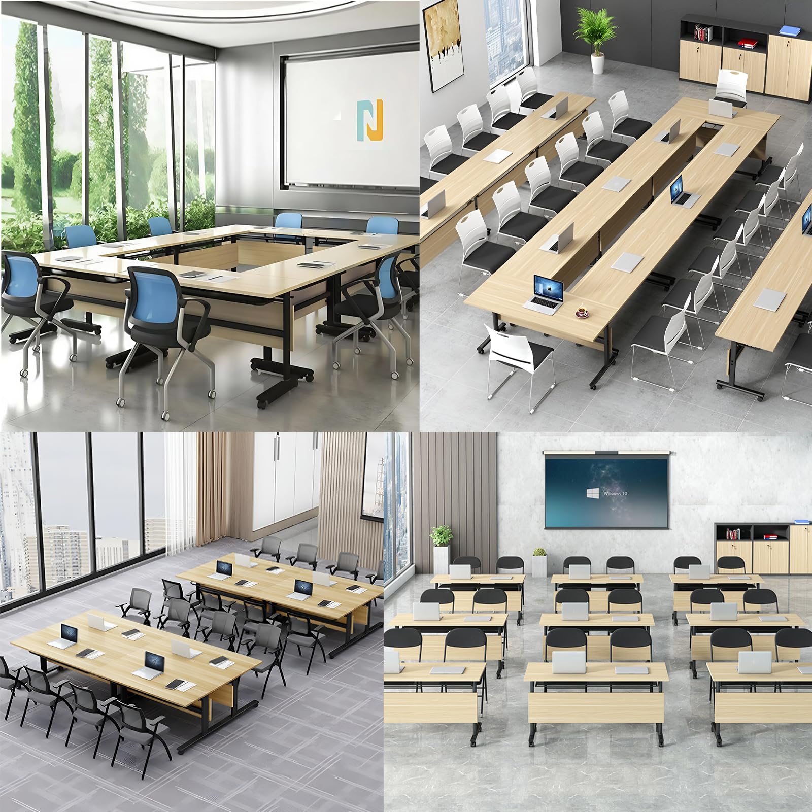 Conference Room Table 4 Pack, Modern Folding Training Table with Flip Top, Mobile