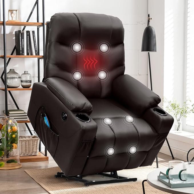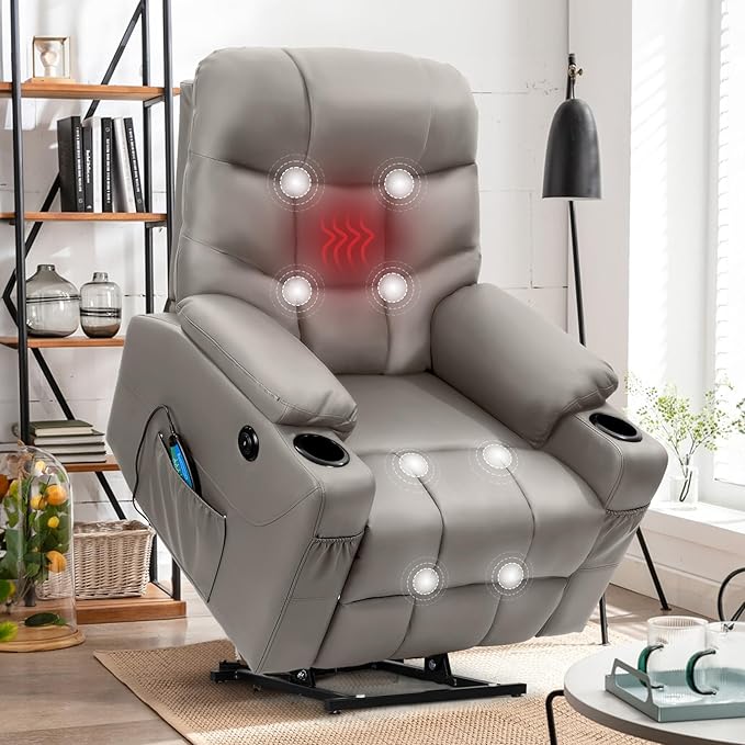 Electric Power Lift Chair, PU Leather Massage Chair Recliner for Adults, Elderly, USB Port