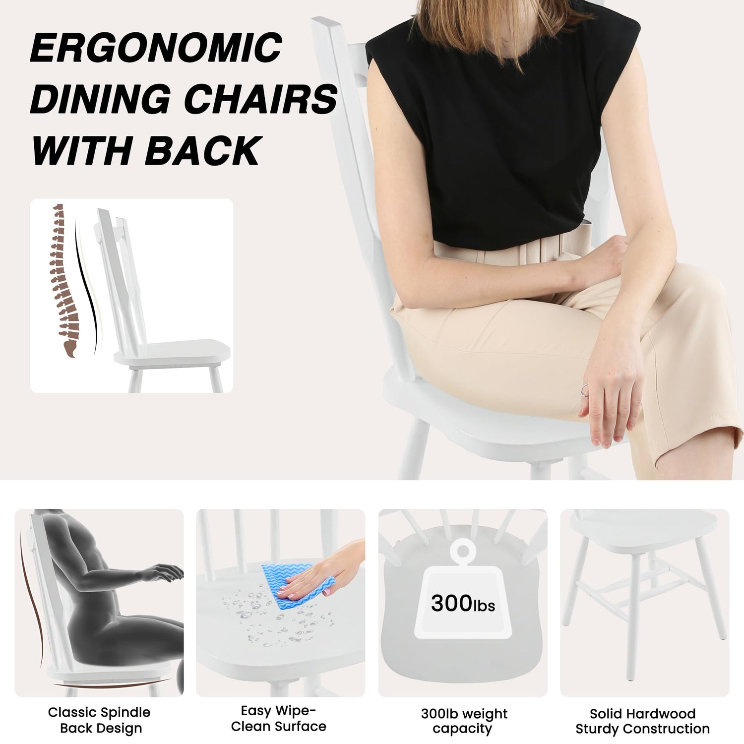 White Windsor Dining Chairs Set of 6 - Solid Wood Spindle Back