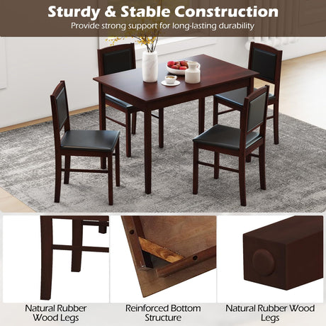 5 Piece Outdoor Dining Set All-Weather Wicker Patio Dining Table and Chairs
