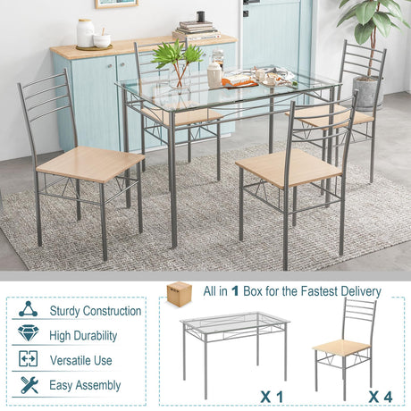 Sale price From $463.99 USD Regular price $899.99Unit price /UnavailableIn stock 5-Piece Glass Dining Table Set with 4 Chairs