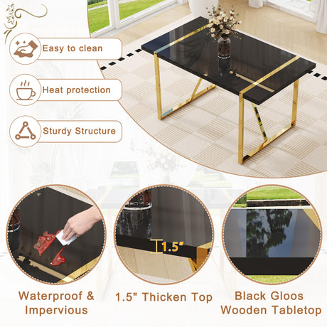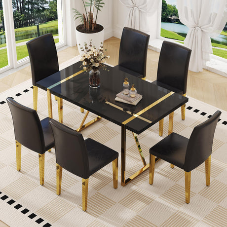 Regular price From $1,450.99 USDUnit price /UnavailableIn stock55" Black Dining Table Set for 6 with Golden Metal Legs