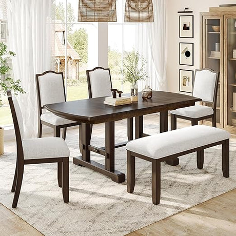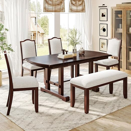 Regular price $1,026.99 USDUnit price /UnavailableIn stock6-Piece Extendable Wood Dining Table Set with Upholstered Chairs