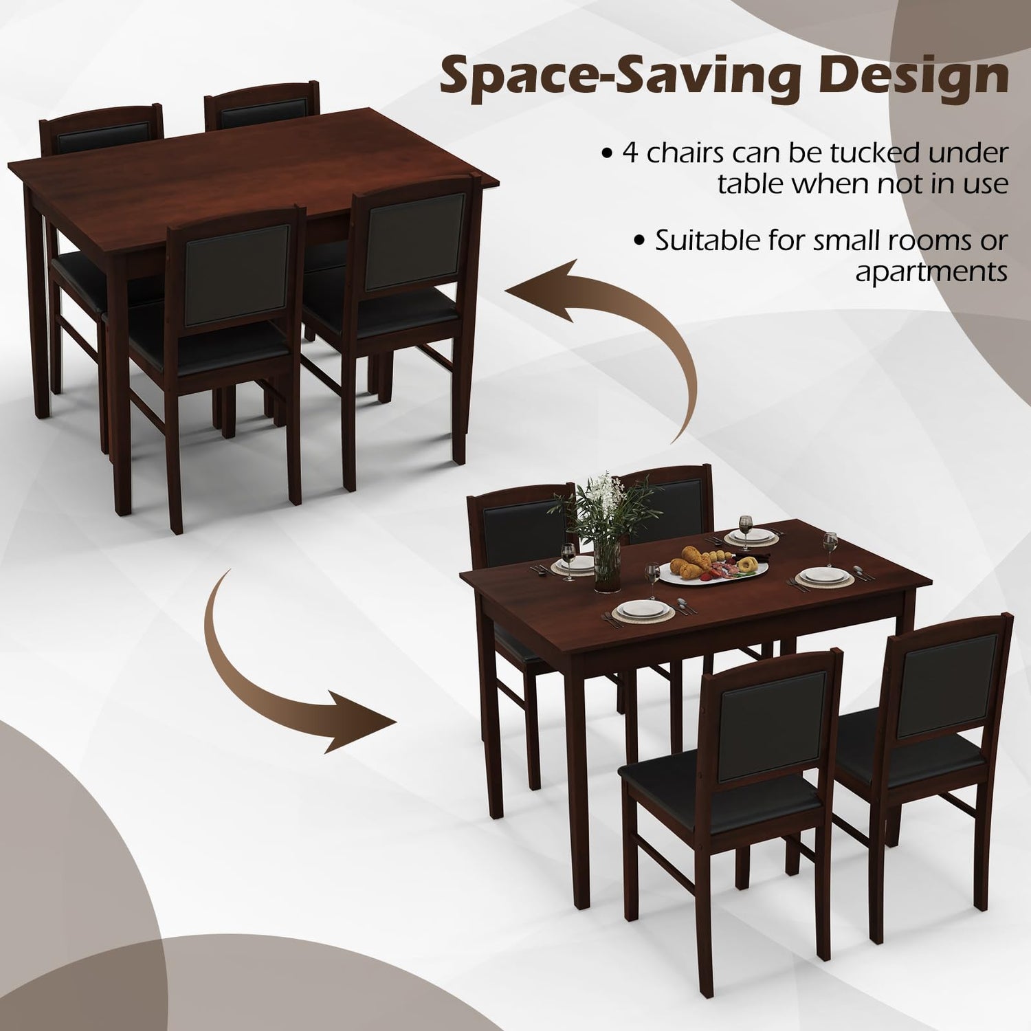 This versatile dining set is ideal for kitchens, dining rooms, breakfast nooks, and apartments. The compact 4-person design maximizes space while the upholstered seating ensures comfort during extended meals and gatherings.