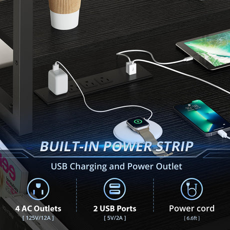 67in L Shaped Computer Desk with Power Outlets, 90.5in Long Home Office