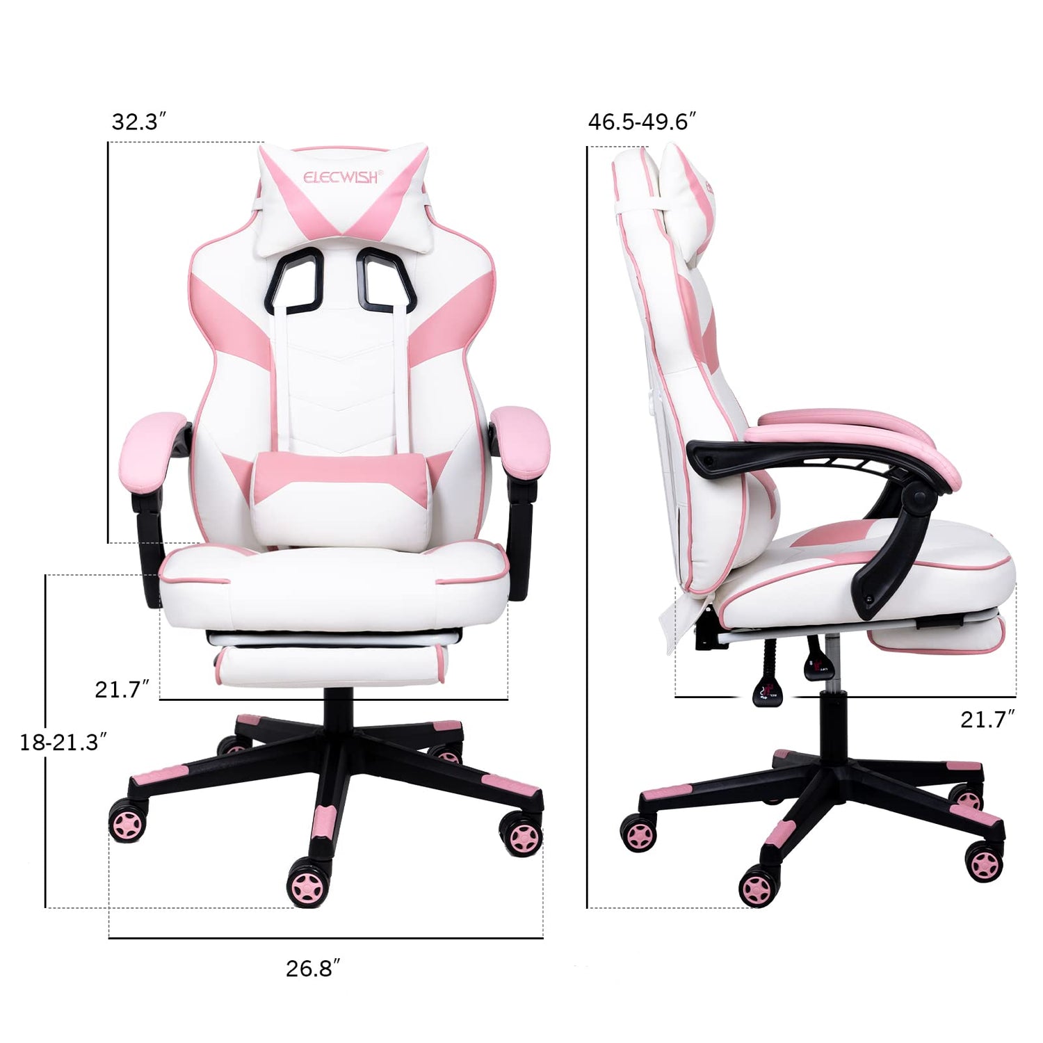 Elevate your gaming setup with this ergonomic pink gaming chair, designed to deliver comfort and style during extended gaming sessions. Featuring a high-back design with integrated lumbar support and headrest cushion, this chair promotes proper posture while adding a vibrant pop of color to any workspace.