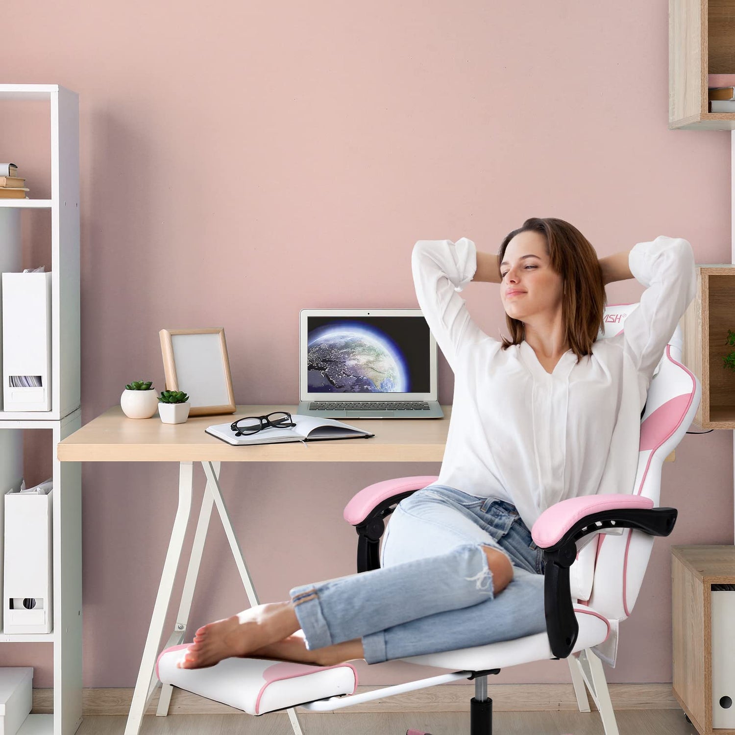 Pink Kawaii Gaming Chair with Lumbar Support