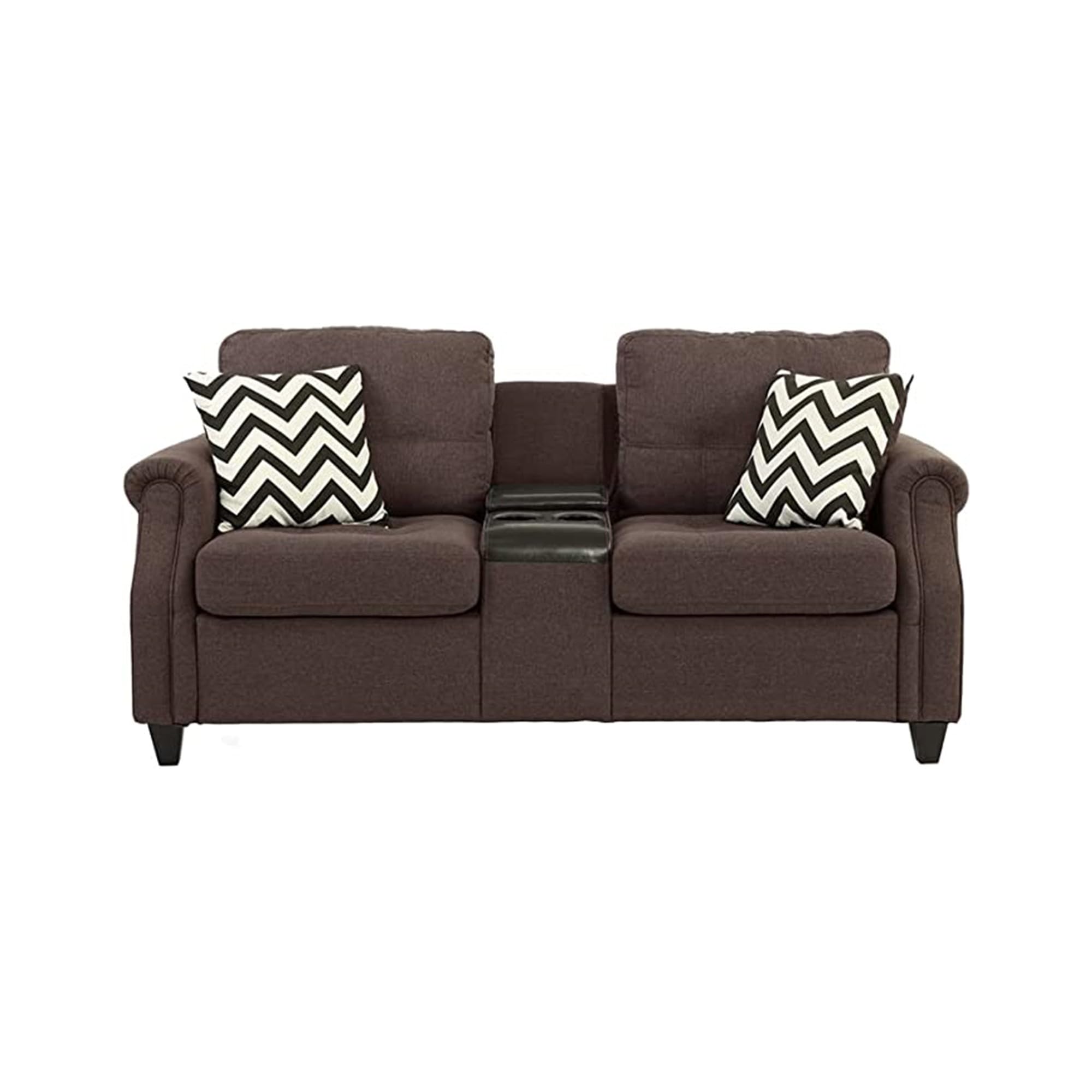 Noa Modern 2 Piece Sofa Loveseat Set, 4 Pillows, USB Ports, Dark, Brown