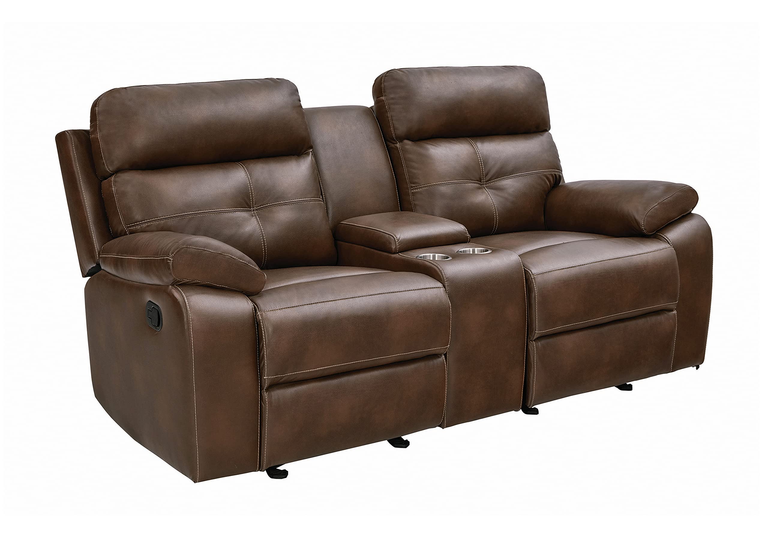 Damiano Glider Loveseat with Button Tuft Detailing and Cupholder Storage Console