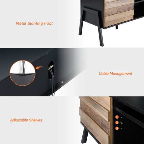 Mid-Century TV Stand for 65" TV with LED Lighting - 60 Inch