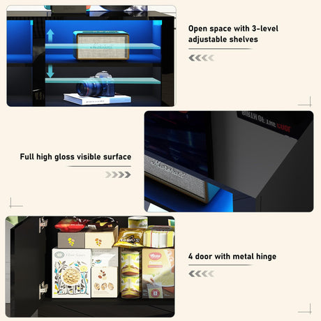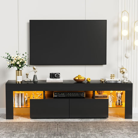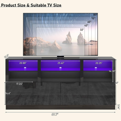 Modern Black LED TV Stand for 70-Inch Televisions with RGB Lighting