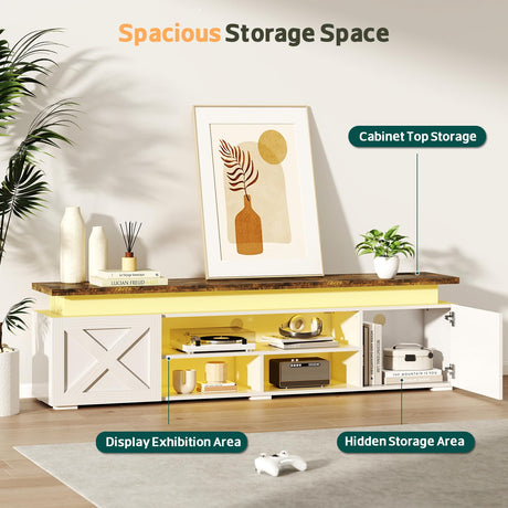 Farmhouse TV Stand for 80 Inch TV with RGB Lighting and Power Outlets