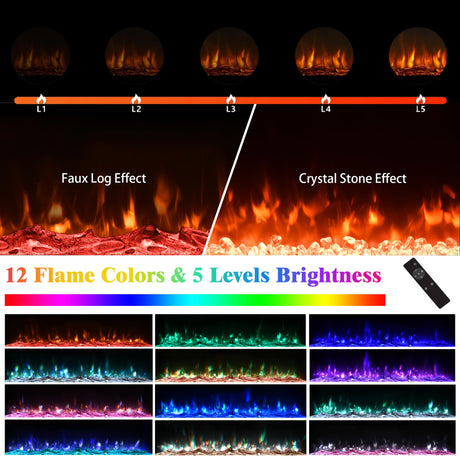 Fireplace TV Stand for 75-80 Inch TV with LED Lighting
