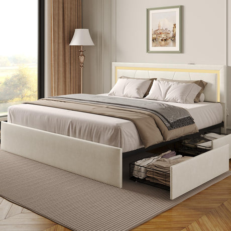 Queen Platform Bed with Storage Drawers and LED Lighting