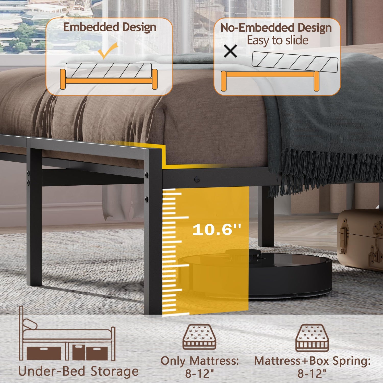 - No Box Spring Required: Sturdy metal slat support system provides reliable mattress support without the need for a box spring