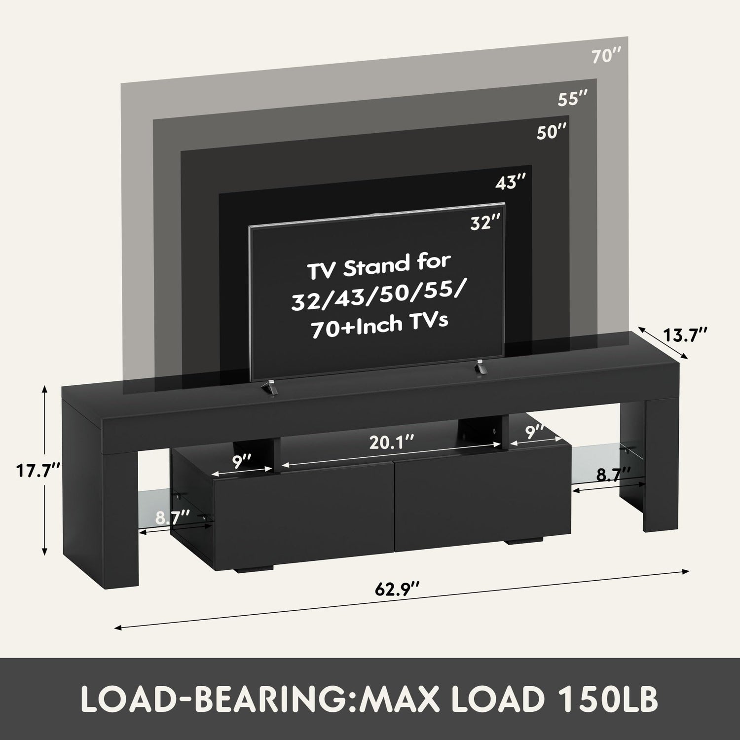 Modern Black LED TV Stand for 70-Inch Televisions with RGB Lighting