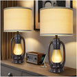Transform your space with these elegant vintage-inspired lantern table lamps that blend timeless design with modern functionality. This set of two retro bedside lamps features a warm rustic finish, soft linen shades, and integrated USB charging ports, making them perfect for living rooms, bedrooms, or study areas.